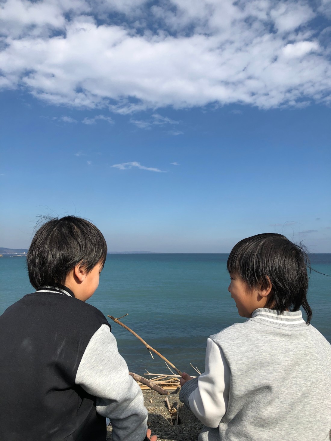 子供たちもこんなに近くで海を見るのは久しぶり、テンション上がってました。ただ、風が寒い😨