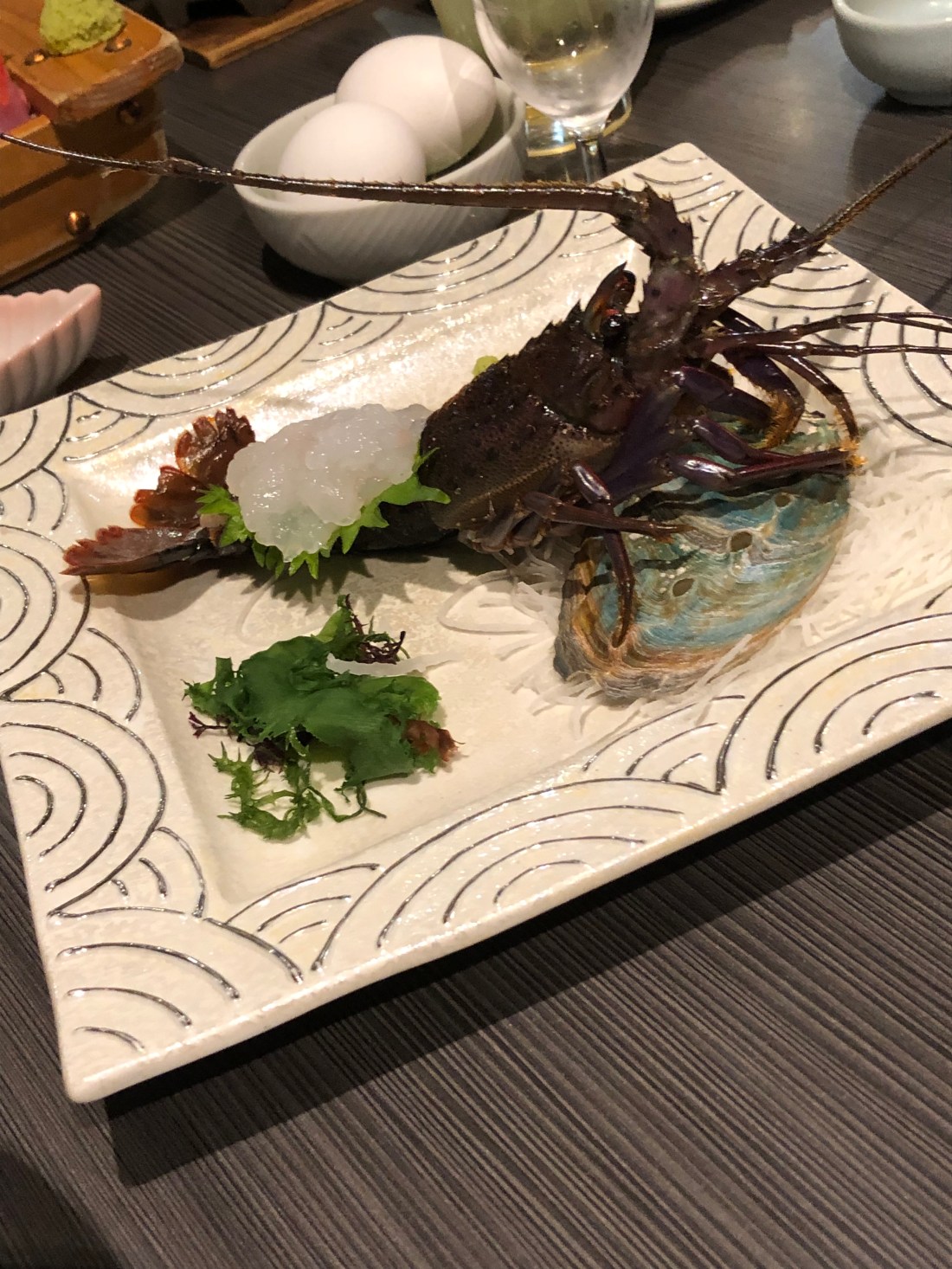 とは言え、私たちも割と早く着いたので、割と直ぐに席へ案内してもらえました。待ってる間、子供たちと生簀の魚や海老を見て楽しんでいました。